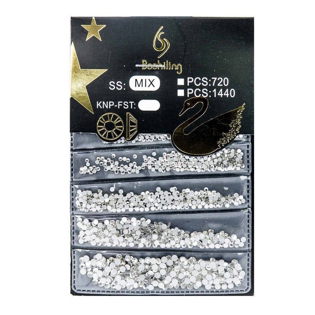 Kamínky na nehty sada C-3 čiré - 1440 ks, mix velikostí