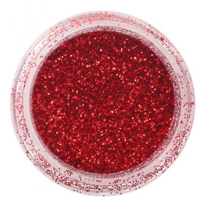 Třpytky na zdobení nehtů v krásné červené barvě v extra velké dóze.