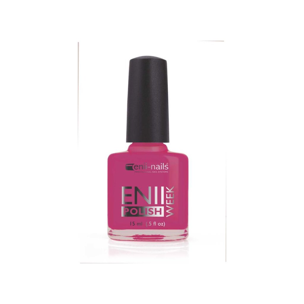 ENII WEEK POLISH je odolný vůči škrábancům a má dlouhotrvající lesk. Poskytuje rovnoměrné krytí, netvoří se šmouhy, neodlupuje se. Nový plochý design štětců Vám ulehčí práci a zabezpečí precizní nanášení laku. Velmi lehce se odstraňuje acetonovým odlakovačem.