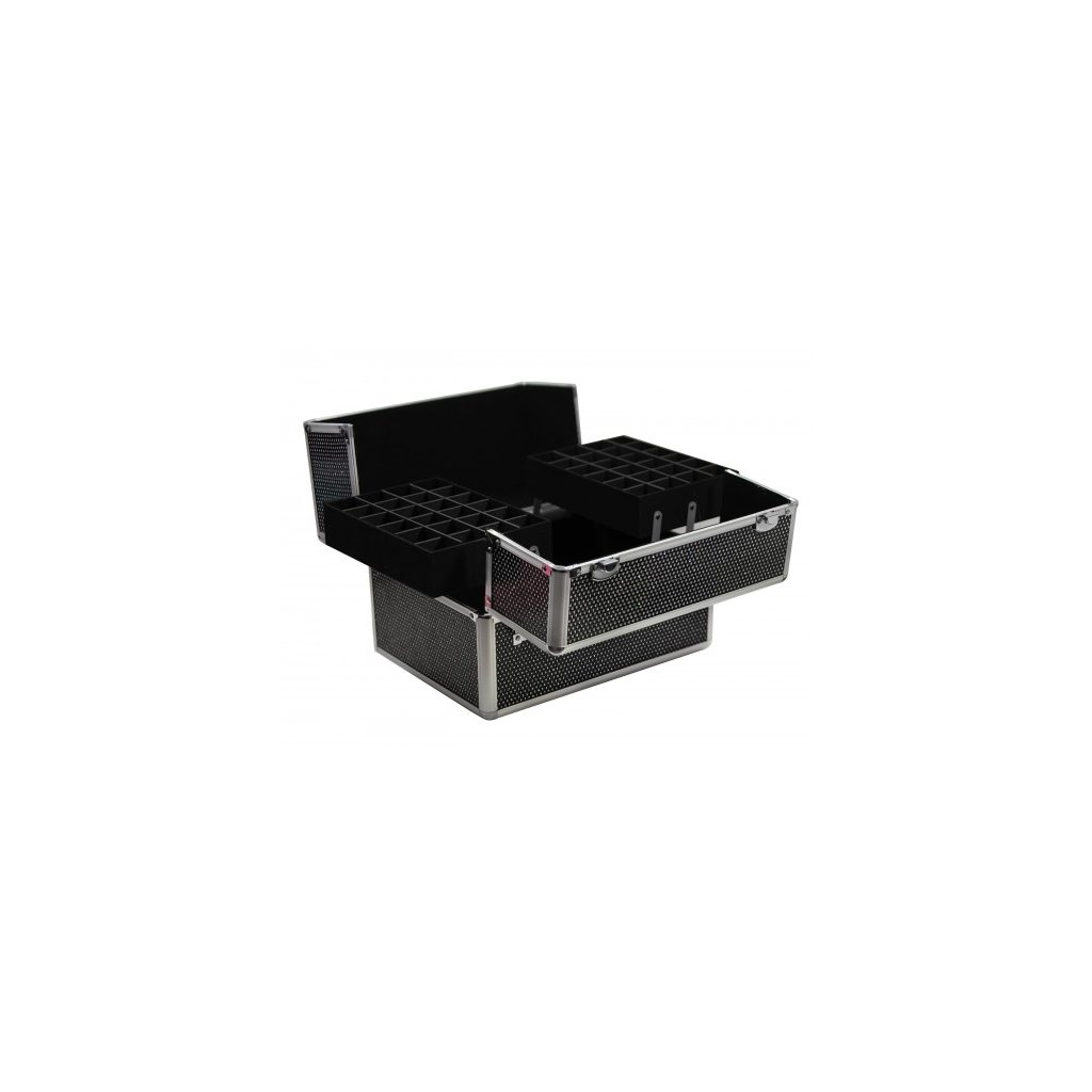 Hliníkový kufřík určený pro skladování a přepravu Vaší kosmetiky, pomůcek potřebných pro modeláž nehtů, šperků a jiných drobných věcí. Navrženo speciálně pro nehtové stylistky. Má praktické přihrádky na laky.