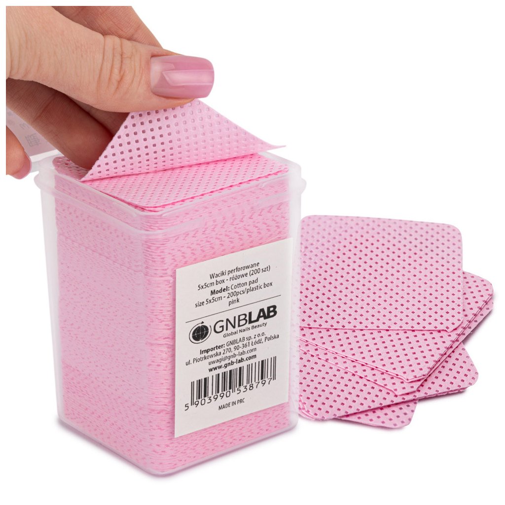 Perforované bezprašné tampony na nehty 5x5 cm 12 vrstev v krabičce růžové 200 ks