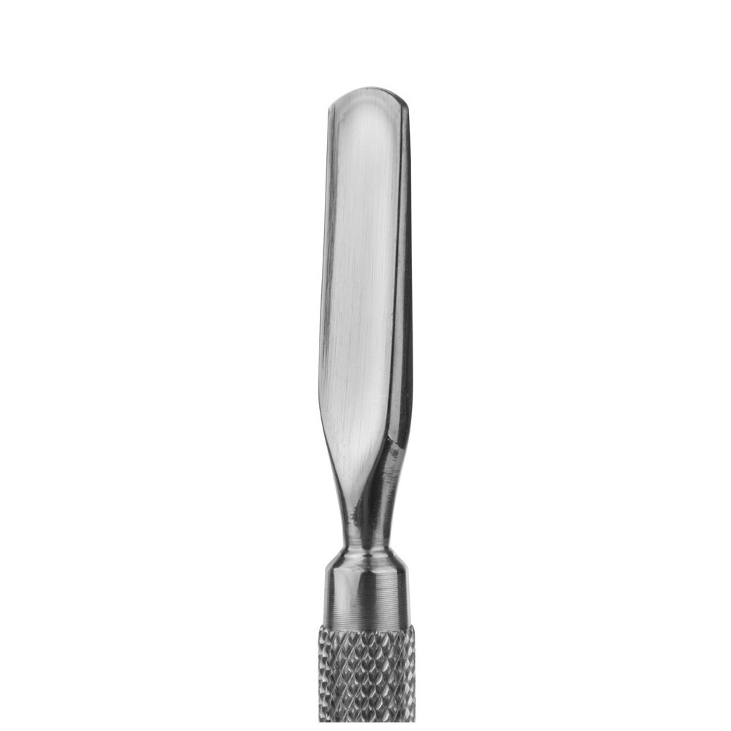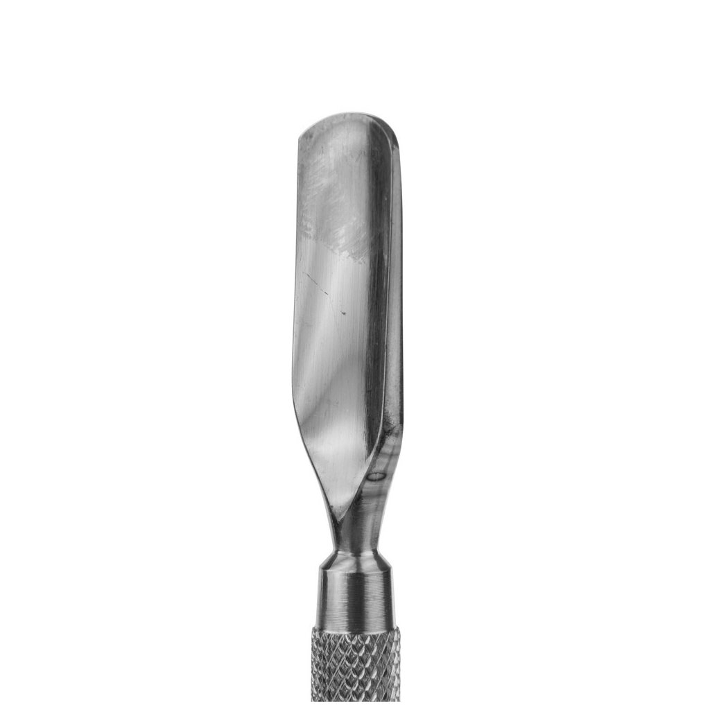 Oboustranný kovový zatlačovač na nehtovou kůžičku, jedna strana oblá "lžička" větší, druhá menší na zatlačení kůžičky v okolí nehtu a na odstranění odumřelých buněk, které zůstaly po zatlačení kůžičky na nehtu.