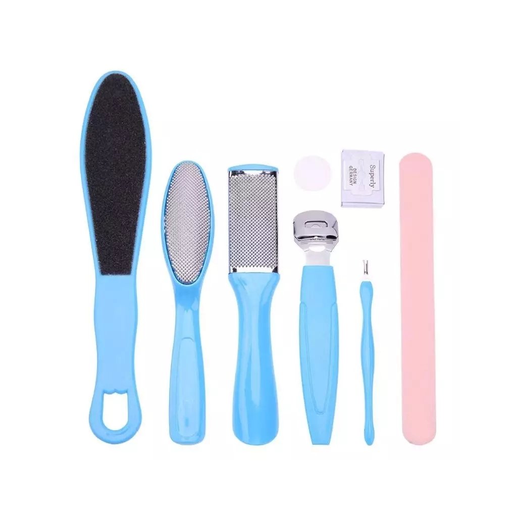 Sada obsahuje : 2 kovové pemzy, jedna klasická, seřezávač kůže, pilník, ořezávač kůžičky, žiletky.