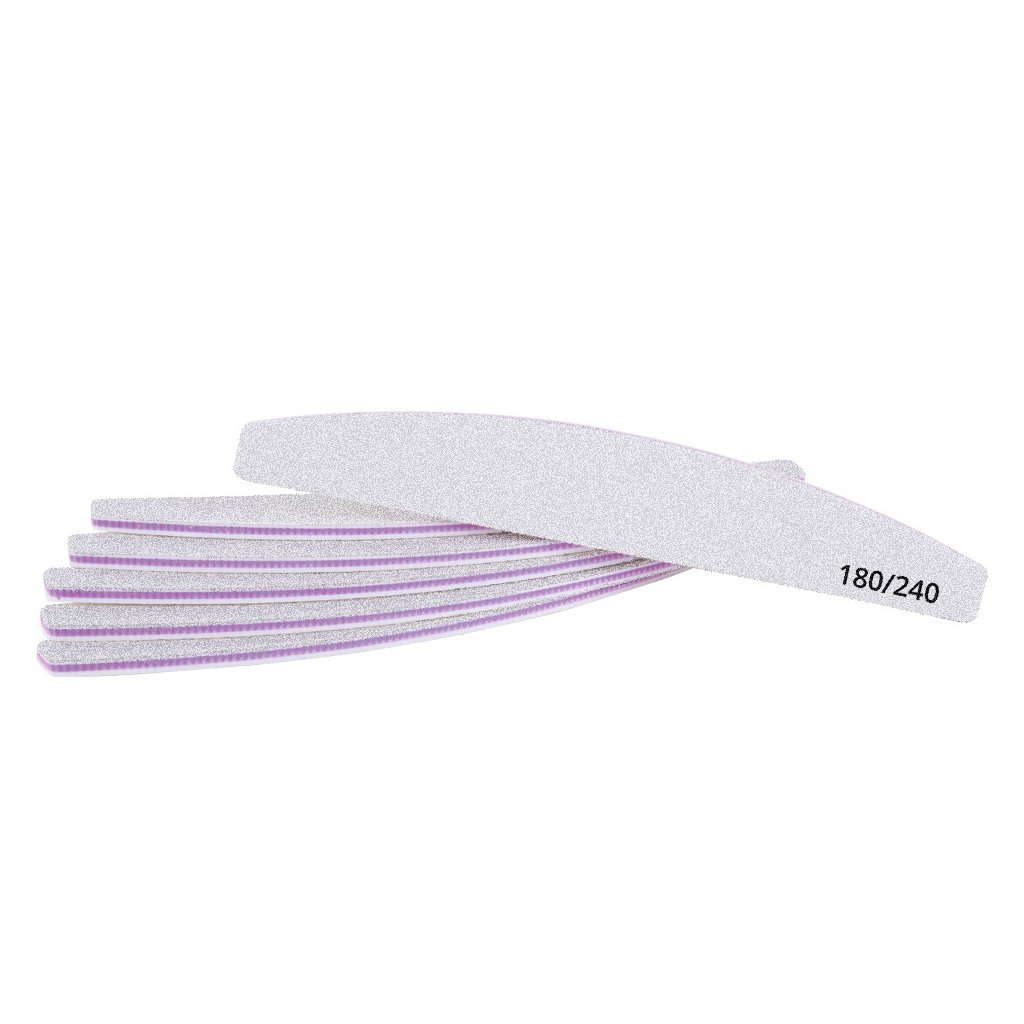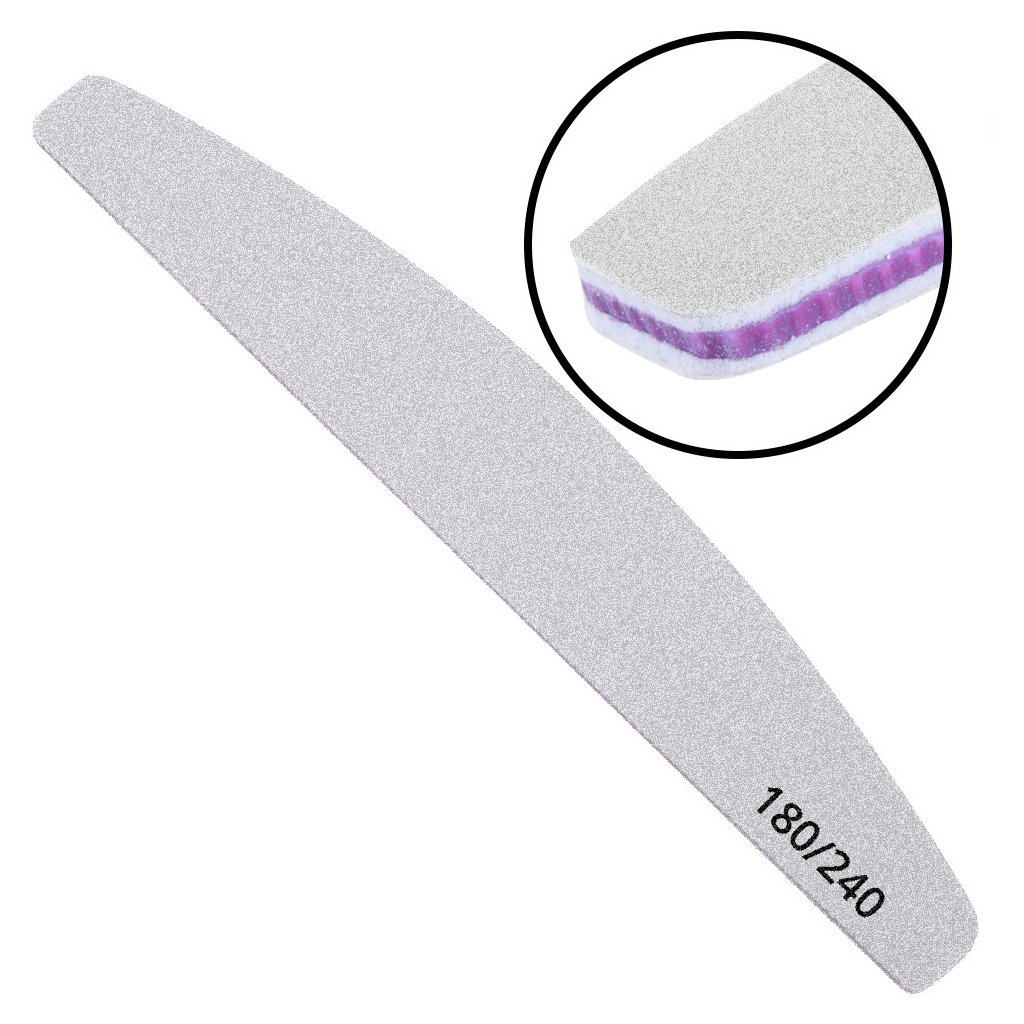 Rovný, široký pilník jemné hrubosti 180/240, vhodný na přírodní nehty.