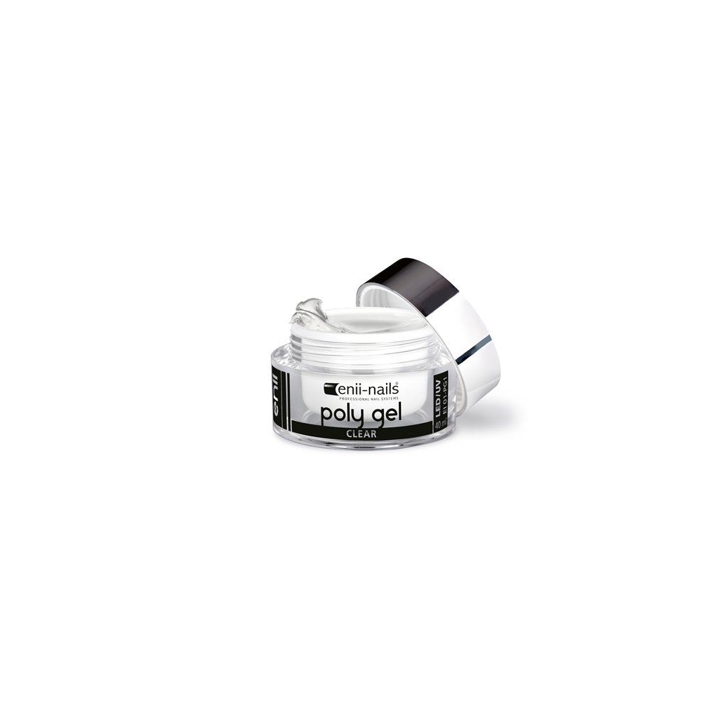 Enii Poly gel je tvrdý gel, ale zároveň mnohem flexibilnější než akryl. Je vhodný na tipy i šablony. Je to kombinace nejlepších vlastností akrylového a gelového systému v jednom produktu.